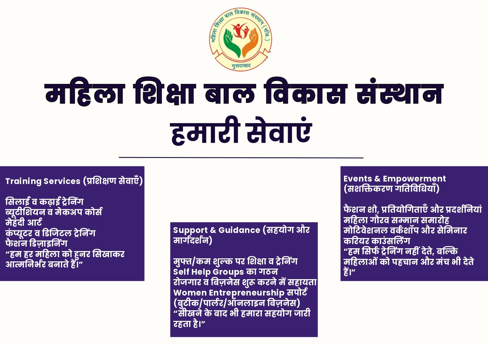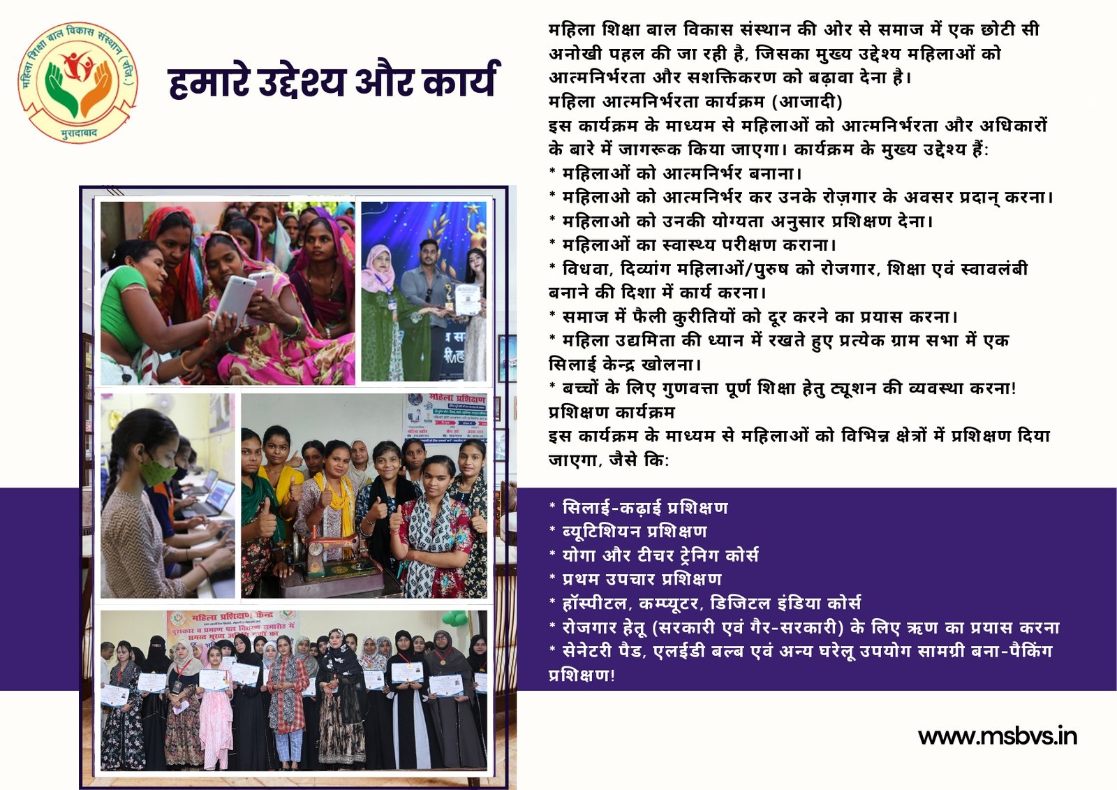 महिला शिक्षा बाल विकास संस्थान का प्रयास है कि हर महिला को उसका अधिकार मिले, हर घर में शिक्षा और आत्मनिर्भरता की मशाल जले,