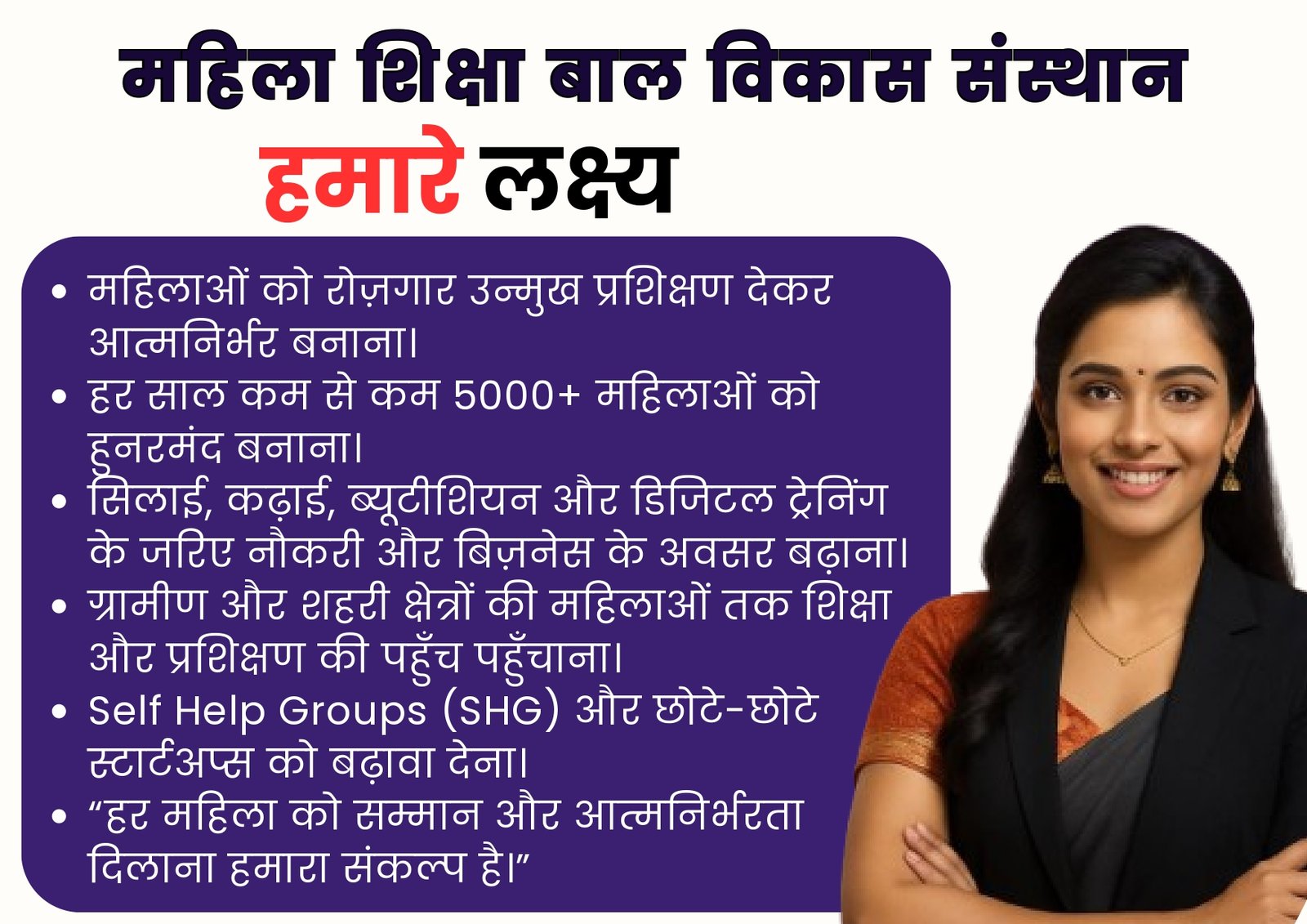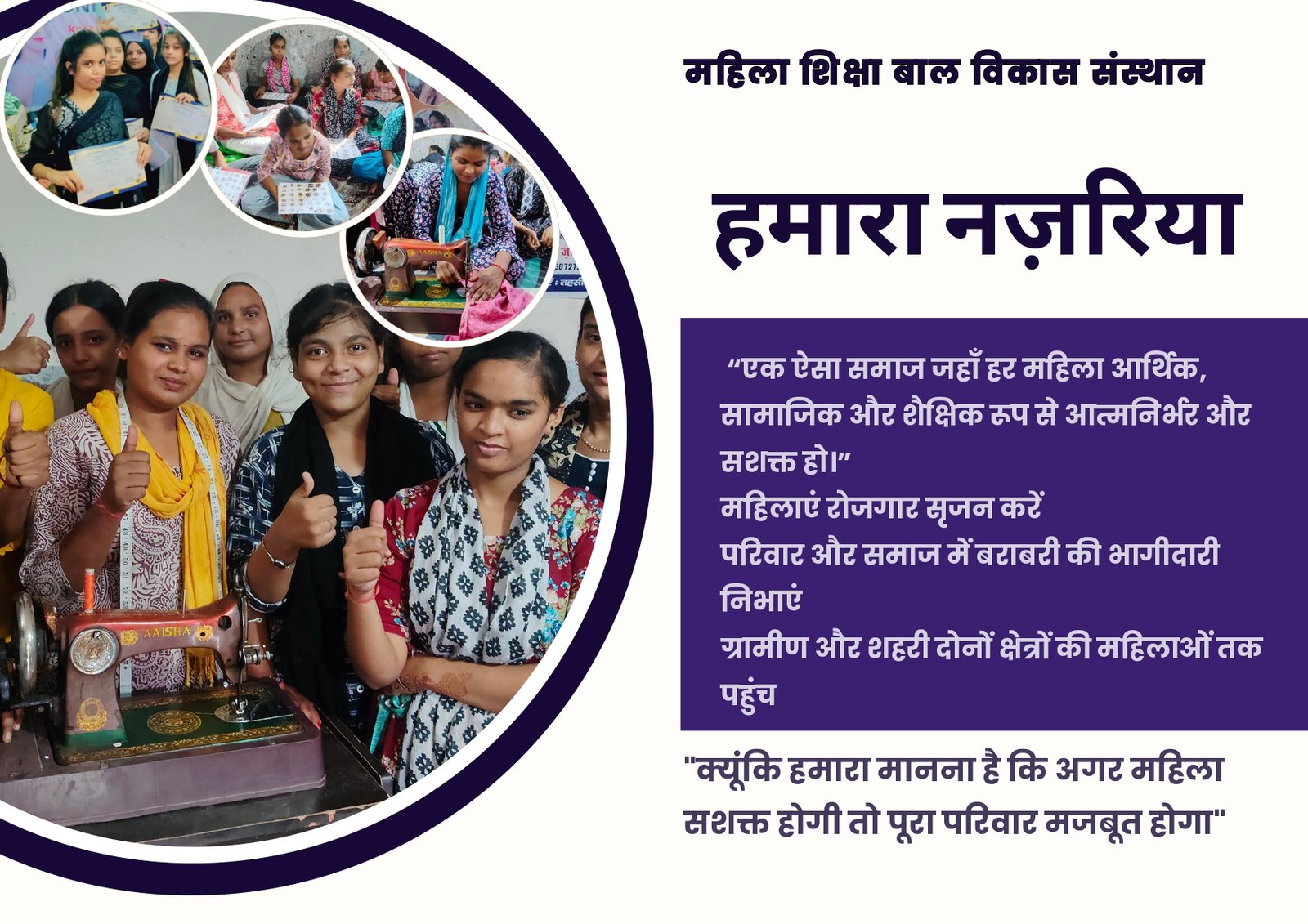 “हर महिला को शिक्षित, आत्मनिर्भर और सम्मानित बनाना।”